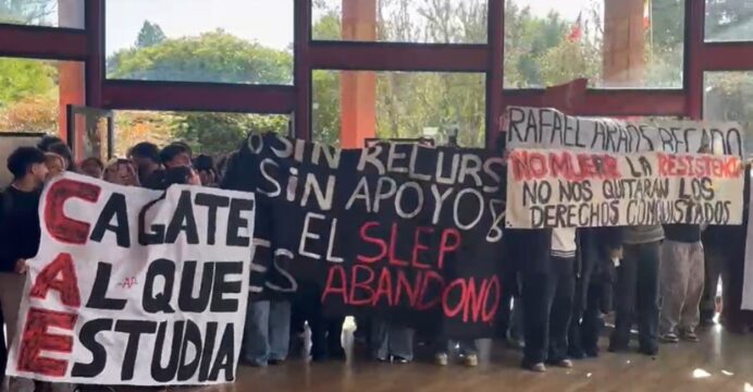 La inauguración del año académico de la Universidad Austral de Chile en Valdivia fue el escenario de una agitada manifestación que levantó pancartas y consignas con críticas a la decisión del gobierno de José Antonio Kast de rebajar el presupuesto del programa Becas Chile.
